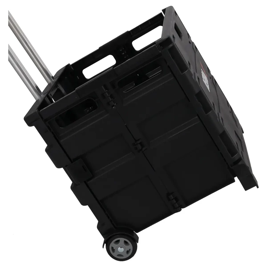 Összecsukható kialakítása, amely egy bőrönd formáját idézi, nemcsak a tároláshoz és raktározáshoz szükséges helyet takarít meg, hanem a munkahelyre történő szállítást is megkönnyíti. Összecsukva könnyedén elfér például egy autó csomagtartójában, ahol minimális helyet foglal el. A kocsi emellett bőséges tárolóhelyet biztosít a különféle kiegészítők számára – űrtartalma akár 67 liter. Magas minőségű műanyagból és alumíniumból készült, ezért könnyű, de egyben tartós és ellenálló is. A kocsi minimális súlya mellett rendkívül erős, maximális teherbírása 35 kg.