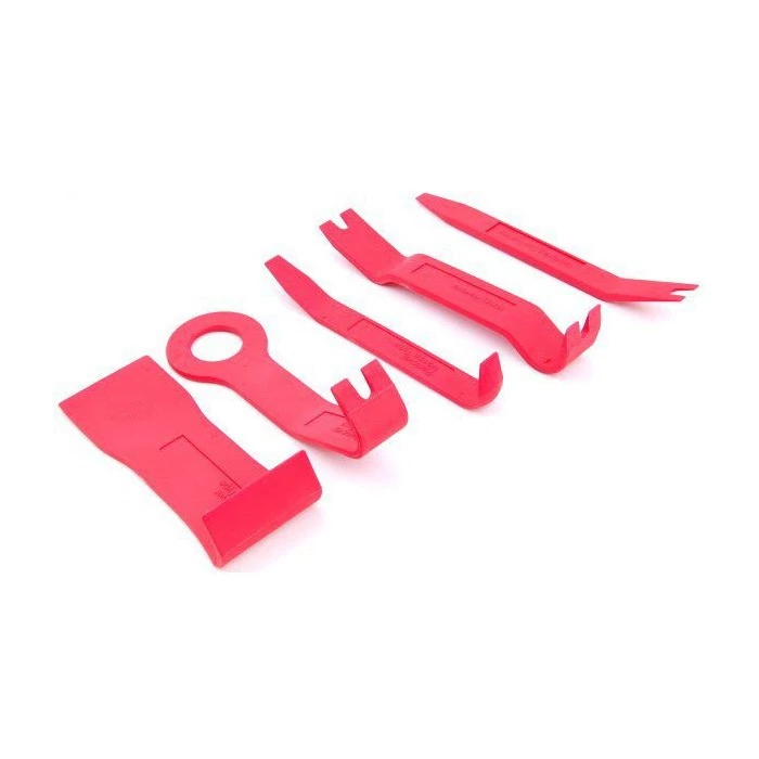 A készlet öt különböző méretű és stílusú, mindkét végével használható eszközt tartalmaz, amelyek lehetővé teszik a műanyag patenteknek, kötőelemek, kárpitrögzítők, díszítőelemek, márkajelek, kárpitok és burkolatok könnyű és gyors eltávolítását.