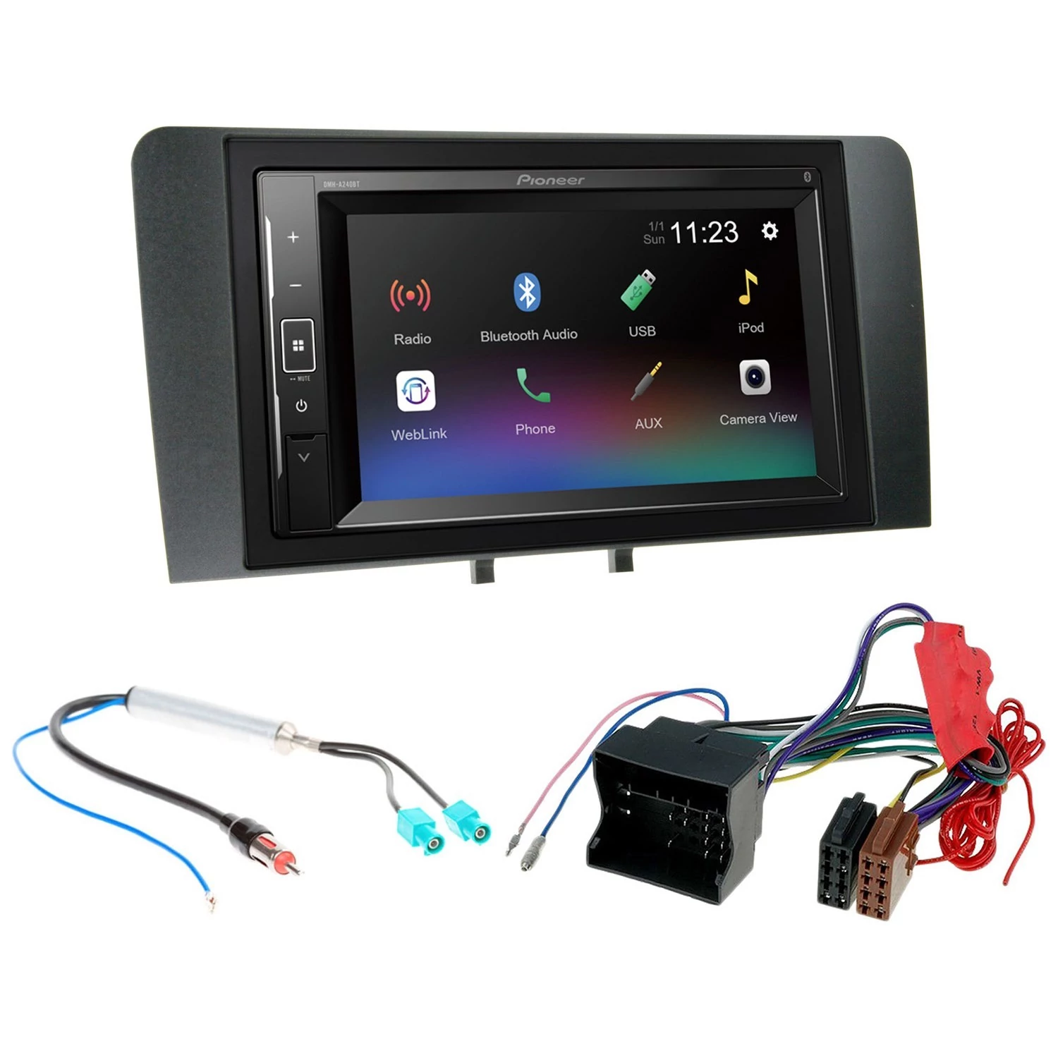 - Fejegység: Pioneer DMH-A240BT 2 DIN méretű, univerzális multimédiás fejegység 6,2'' LED érintőképernyő, 16:9 képarány. Beépített Bluetooth kihangosító! 2 telefont kezel egyidőben Fehér gombvilágítás. WebLink, applikációk átvétele telefonról! iPhone/Android USB zenelejátszás, USB direkt. 3 pár 2V RCA kimenet, 13 sávos EQ.