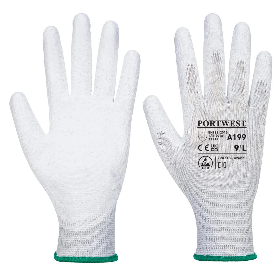 13g pylon és szénszálból készült ESD antisztatikus munkavédelmi kesztyű, PU (poliuretán) kopásálló tenyérbevonattal van ellátva az elektronikai ipar számára. A kesztyű anyaga megakadályozza az elektromos feltöltődést, a tenyérbevonat fogásbiztonságot, a kézhát pedig jó szellőzést biztosít. Használható a legtöbb érintőképernyős eszközzel. Tökéletes választás összetett feladatokhoz, elektronikai szerelési, tesztelési és precíziós munkákhoz. Az A198 cikkszámú védőkesztyű tenyér bevont változata.
