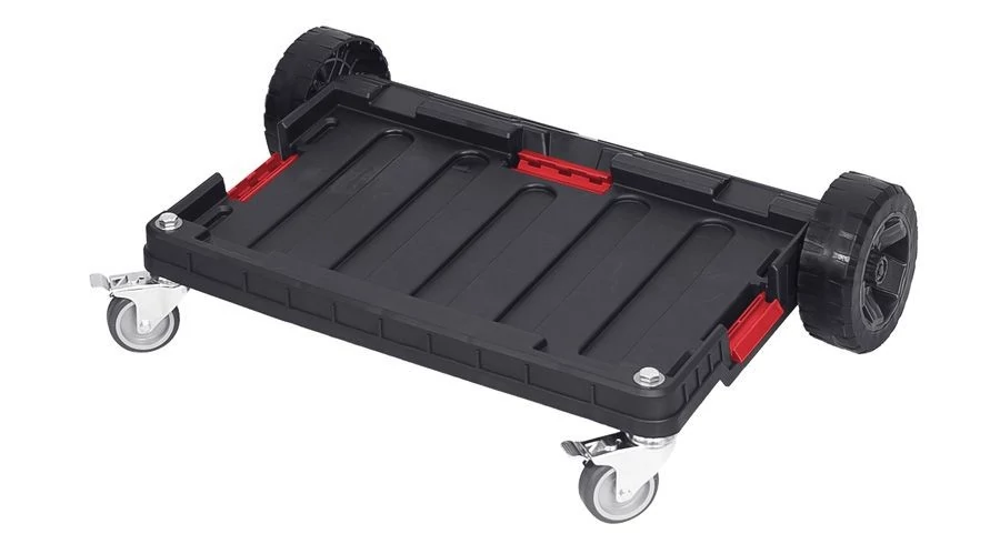 Két első nagyméretű, fémtengelyre szerelt, tartós, gumibevonatú kerék, amelyek lehetővé teszik az olyan akadályokon való áthaladást, mint a lépcsők, rámpák vagy sár. A fékkel ellátott fém forgó kerekek kiváló manőverezhetőséget biztosítanak, és megvédik az egész készletet a nem kívánt mozgástól.