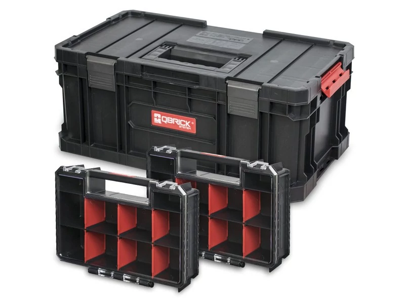 Moduláris, tartós szerszámosláda poliamid reteszekkel és masszív fogantyúval. Nagy kapacitás és két állítható elválasztó biztosítja a különféle szerszámok kényelmes tárolását.