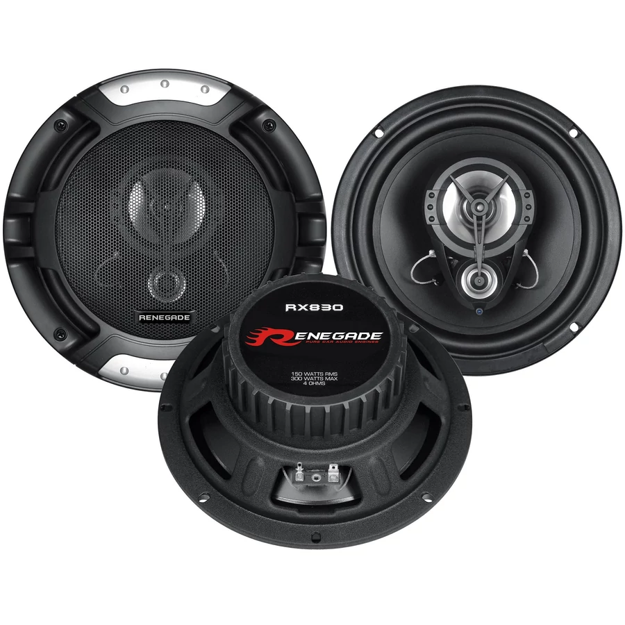 Renegade RX 830 20cm átmérőjű 3 utas koaxiális hangszóró, 150W folyamatos terhelhetőségű. Kifinomult polipropilén membránnal, tartozék fém hangszóró ráccsal. Kiváló megoldás azok számára, akik az alap hangrendszert szeretnék frissíteni elérhető áron az autójában.