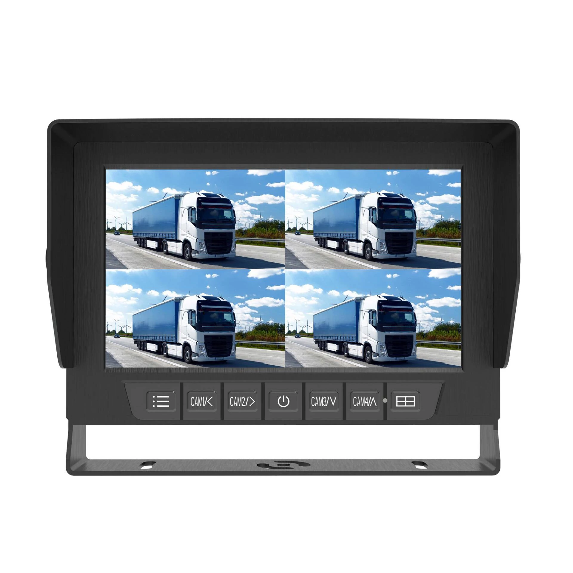 A RIS RM-7015FQ egy 7 hüvelykes, víz- és ütésálló quad monitor, amelyet kifejezetten teherautókhoz, kamionokhoz, buszokhoz, munkagépekhez és mezőgazdasági gépekhez terveztek. A masszív fém ház és az IP-védelem biztosítja a tartósságot még extrém körülmények között is.