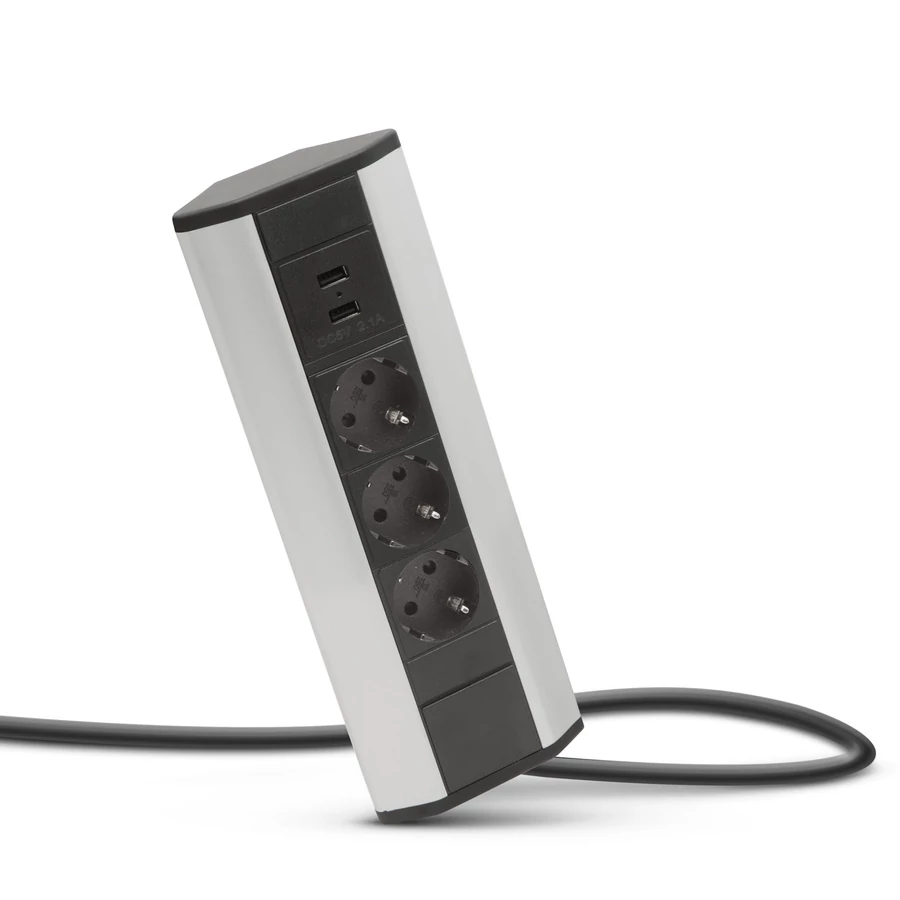 Ennek a sarokba helyezhető elosztónak köszönhetően helyet takaríthat meg bármely felületen. Ideális lehet konyhákba, szobákba, irodákba és minden olyan helyen, ahol nem lehetséges villamoshálózat, konnektor kiépítése. A beépített USB portoknak köszönhetően könnyen és gyorsan feltöltheti mobil eszközeit is. Használatával elkerülhető a falak vésése vagy a munkapult, bútorlap nagymértékű vágása. A sarokba helyezhető elosztó helyet takarít meg Önnek a falfelületen is, így például több hely marad a konyhapult felett kések, konyhai eszközök rögzítésére, felakasztására.