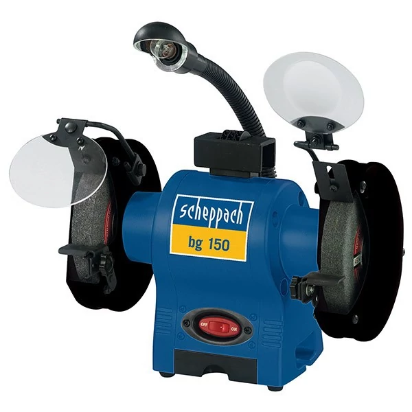 Függetlenül attól, hogy a műhelyben a munkát csak hobbi szinten végzi, vagy esetleg az a foglalkozásához tartozik, biztos, hogy mindig szüksége lesz jól megélezett szerszámokra. Ezt a célt szolgálja a kicsi, de nagyon hatékony BG 150 Scheppach gyártmányú köszörű. A gép alapja egy nagyon stabil fémkonstrukció, amely biztosítja a gép vibrációsmentes és kiegyensúlyozott működését. A karbantartásmentes gép és a nagyon halk indukciós motor garanciát nyújtanak a tökéletes végeredmény eléréséhez. A nagy, áttetsző védőburkolatok, amelyek védik a szemeit, minőségi anyagból készülnek, így mindig tökéletes, torzításmentes rálátást biztosítanak a megmunkált anyagra. A munkadarabtartók beállíthatók, így jelentősen meghosszabbítható a köszörűkorong élettartama. A munkaterület megvilágítása csiszolás közben, ellengethetetlen kiegészítője a gépnek. Az integrált, nagy teljesítményű lámpa, egy flexibilis karon van elhelyezve, így az optimálisan beállítható a kívánt szögbe. A korongvédő burkolatai vízgyűjtőtálcaként szolgálnak, így a csiszolt anyag mindig megfelelően van hűtve, és nem változik meg annak fizikai tulajdonsága sem. A köszörű tartozéka egy durvább, és egy finomabb köszörűkorong. A korongok első éleinek kiegyenlítését az integrált élkiegyenlítő biztosítja. A gép stabilitását négy gumírozott láb biztosítja, vagy csavarok segítségével a gép rögzíthető a munkaasztalhoz is.