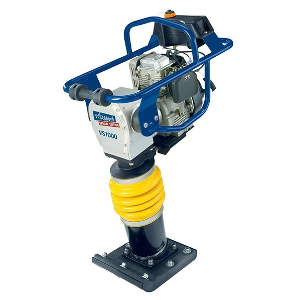 A VS 1000 vibrációs döngölőgép kiváló ár-érték aránnyal rendelkezik, és esetleg érdekelheti Önt, amennyiben építkezik, karbantartási munkákat végez a ház körül, vagy építési munkákkal foglalkozik. A döngölő kiválóan alkalmas a homok, a kavics, az agyagos talaj vagy vegyes talaj, tömörítéséhez olyan helyeken is, ahol más géppel nehezebb dolgozni, úgymint a házfalak mentén, közműépítéseknél, építési munkagödröknél, stb. A gépet nagyon kényelmesen és egyszerűen lehet kezelni a masszív, acélkereten elhelyezett kezelőegységgel. Az acélkeret egyben védi a motort és a sebességváltó érzékeny részeit az esetleges sérülésektől. Az egész gépet rendkívül jól kiegyensúlyozták, ennek köszönhetően nagyon könnyű tartani vele a döngölési irányt munka közben, ami ebben az árkategóriában meghaladja az átlagon felüli értéket. A magas 1000 kg-os ütőerő miatt könnyen alkalmazható bármilyen talajtömörítési feladathoz. A világ egyik legnagyobb motorgyártója által készített motor érzékeny szűrőberendezéssel van ellátva a poros környezetben végzendő munkákhoz, könnyen indítható, csendes, megbízható és gazdaságos az üzemanyag fogyasztása is. A komfortosabb munkavégzéshez a gépkeret hatalmas gumírozott rezgéscsillapítókon van elhelyezve. A görgők a gép tartozékai, amelyek lényegesen megkönnyítik annak mozgatását.