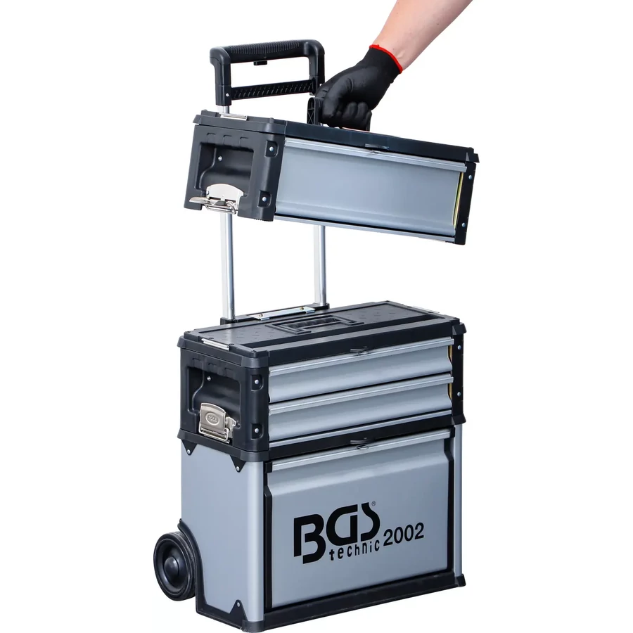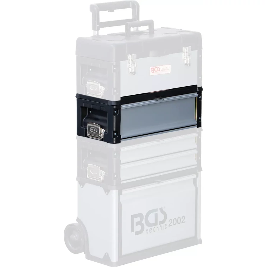 A BGS 2002-es szerelőkocsihoz többféle fiók és kiegészítő elérhető, amelyek segítenek a szerszámok rendezésében és tárolásában.