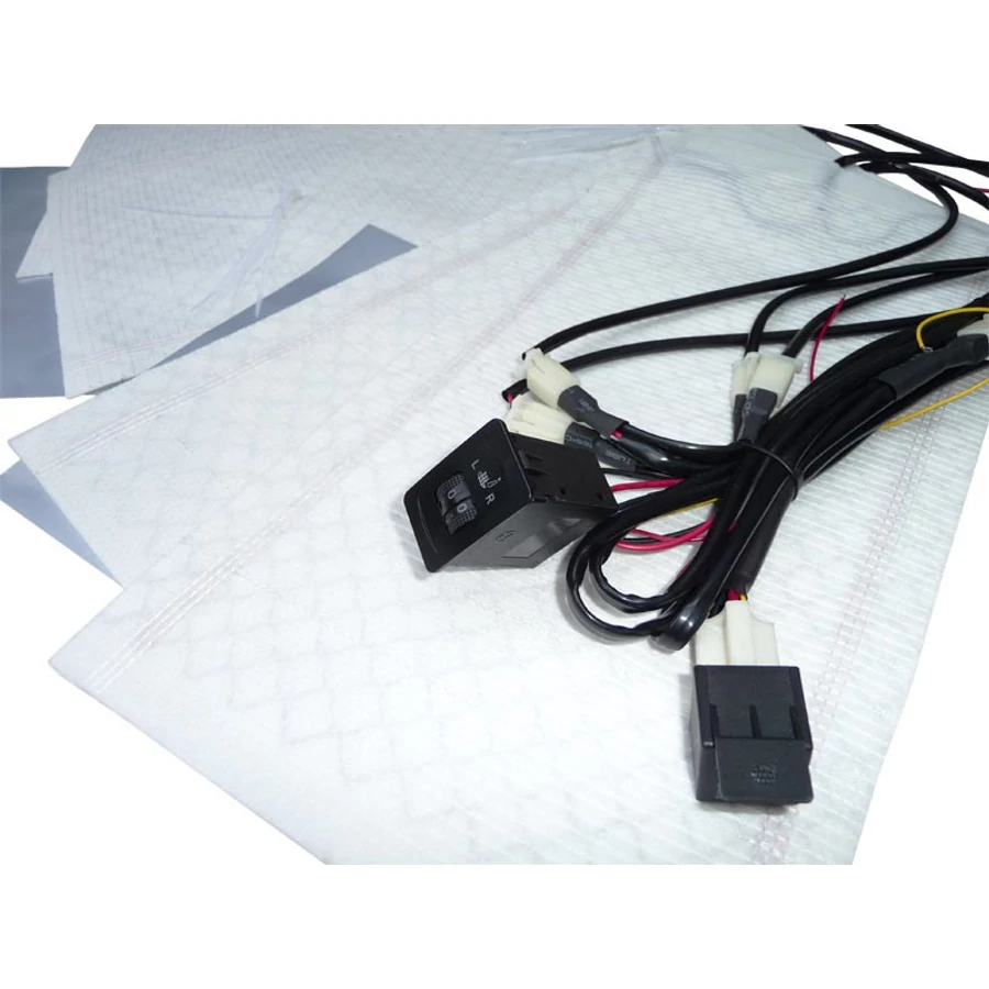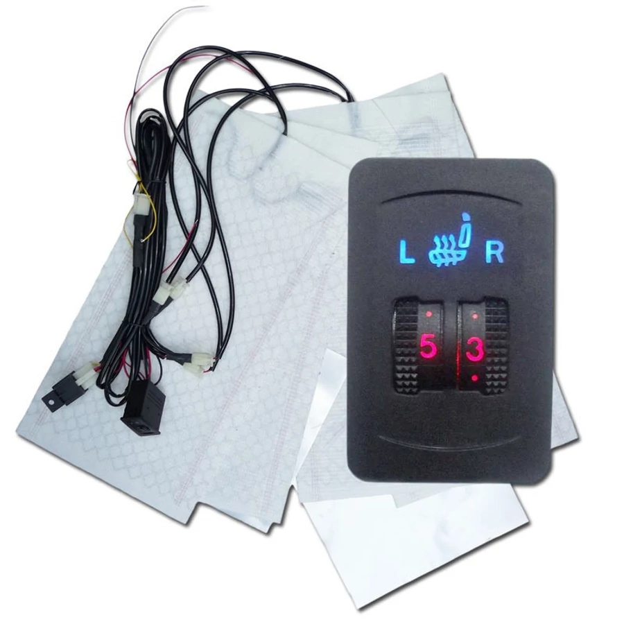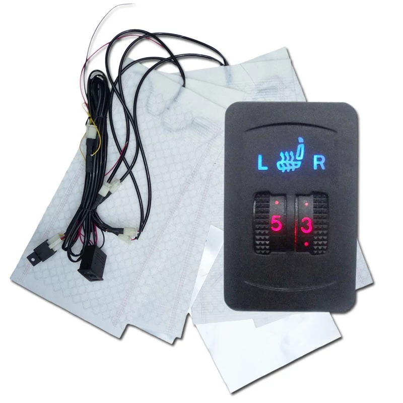 Gyári üléskárpit alá szerelhető carbon szálas ülésfűtés. 10 fokozatú tekerős kapcsoló, 1 kapcsolóról vezérelhető 2 ülés! Digitális hőmérséklet vezérlés. 35°C-tól 70°C-ig 10 lépésben szabályozható hőmérséklet! 4 db Carbon szálas fűtő párna 2 ülésre! Carbon szövetszál nem sérül, puha vékony paplan, nem deformálja a gyári kárpitot!