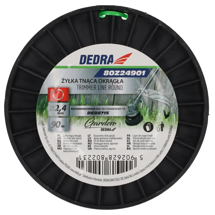 A DEDRA 80Z24901 damil megbízható termék fű, bozót vagy gyomnövények nyírásához. Kiváló minőségű, sérülésálló anyagból készült, így garantálja a tartósságát még kemény akadályok esetén is. Tökéletesen működik mind a benzines vágógépekkel, mind az akkumulátoros és elektromos fűszegélynyírókkal, így sokoldalúan használható eszköz a kertben vagy a parlagon hagyott területen. A kerek keresztmetszet lágyabb, egyenletesebb fű- és gyomvágást biztosít, ami esztétikusabb vágási felületet eredményez. Ez különösen fontos a fűnyírásnál, ahol a vágás egyenletessége befolyásolja a kert általános megjelenését. A zsinór egy praktikus orsóra van tekerve, ami megkönnyíti a tárolását, és biztosítja, hogy szállítás és tárolás közben ne gubancolódjon össze és ne sérüljön meg. A DEDRA DED8715 benzines bozótvágóhoz ajánlott.