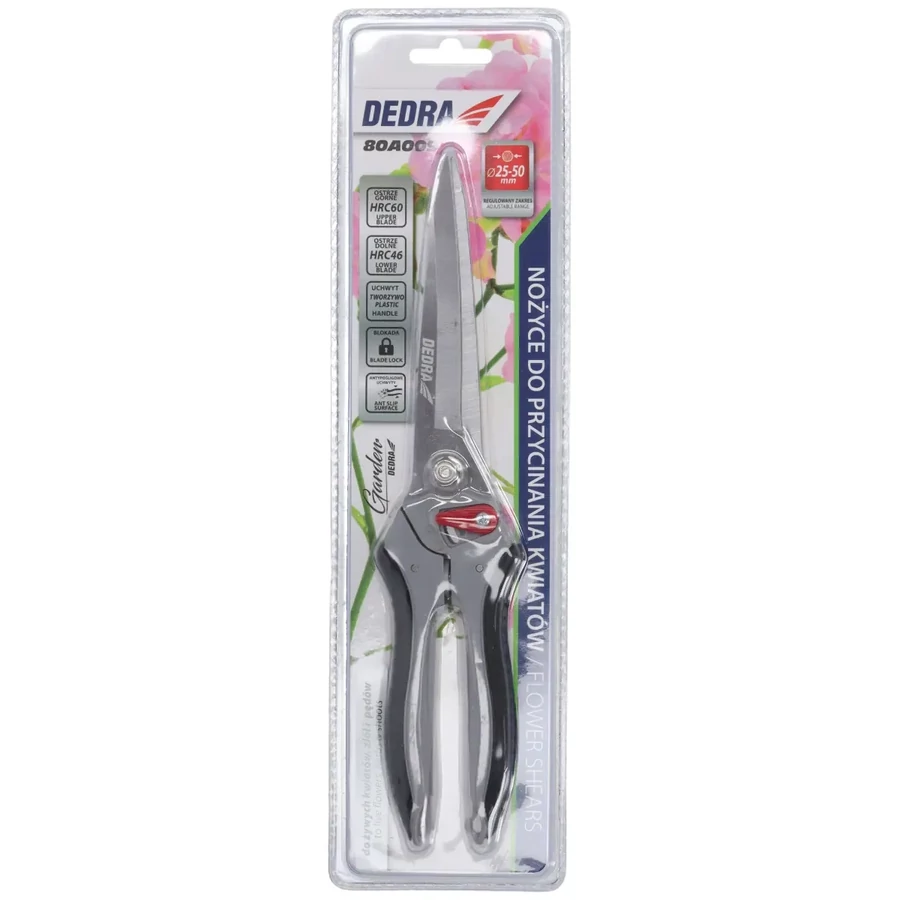 A DEDRA 80A009 virágmetsző olló kiváló eszköz élő növények és virágok precíz vágásához. Az edzett acélból készült pengék rendkívül ellenállóak a kopással szemben, így hosszú élettartamot és hatékony vágást biztosítanak. Az ergonomikus kialakítás és az állítható pengenyitás lehetővé teszi a kényelmes és energiatakarékos munkát, akár háromszor könnyebben vághat vele, mint hagyományos ollókkal.