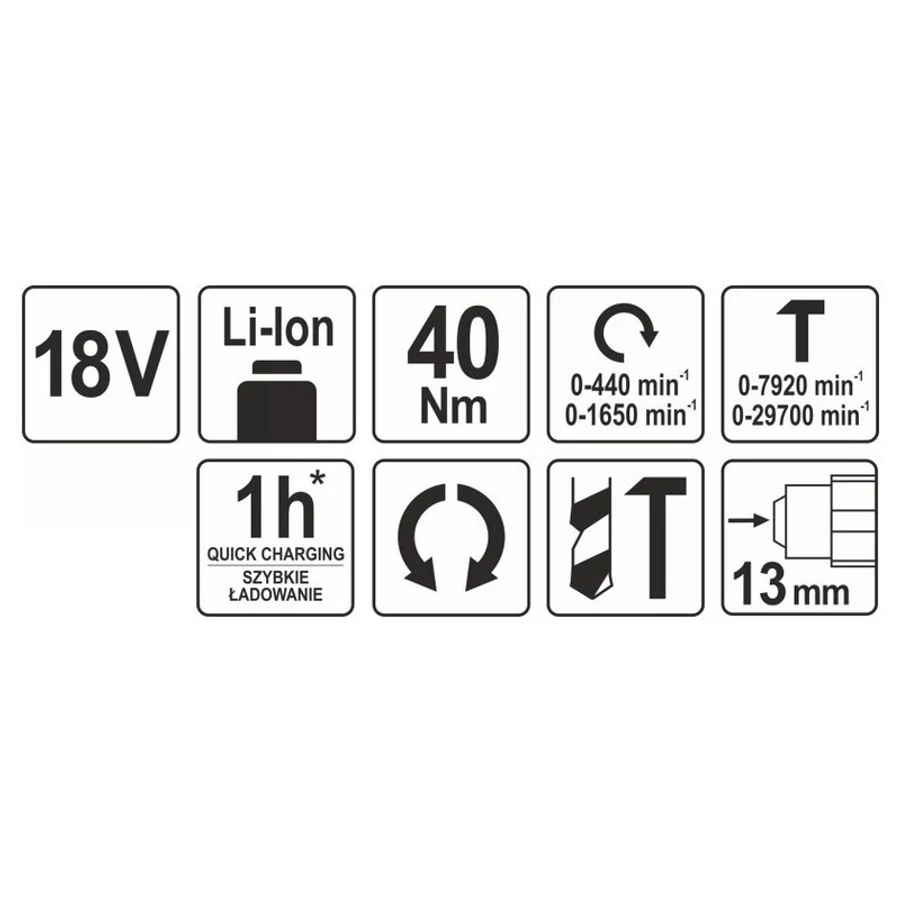 Erőteljes, sokoldalú 18V-os YATO csavarhúzó, tartós acélszerkezettel. Tökéletes fém és- fafúráshoz illetve csavarozáshoz. A 18 V-os rendszer egy sor YATO akkumulátoros szerszám, amely ugyanaz a tartós akkumulátorral működik. Mindegyik eszköz egy akkumulátorral, egy gyors töltővel vagy egy szólóval együtt vásárolható meg, ami ideális megoldás az eszközkészlet bővítésekor. Az akkumulátor tápellátása biztosítja a szabadságot és a munka kényelmét. Ráadásul a YATO vezeték nélküli eszközök tartósak, praktikusak és tökéletesen kiegyensúlyozottak. Így örömmel dolgozik velük minden profi szakember.