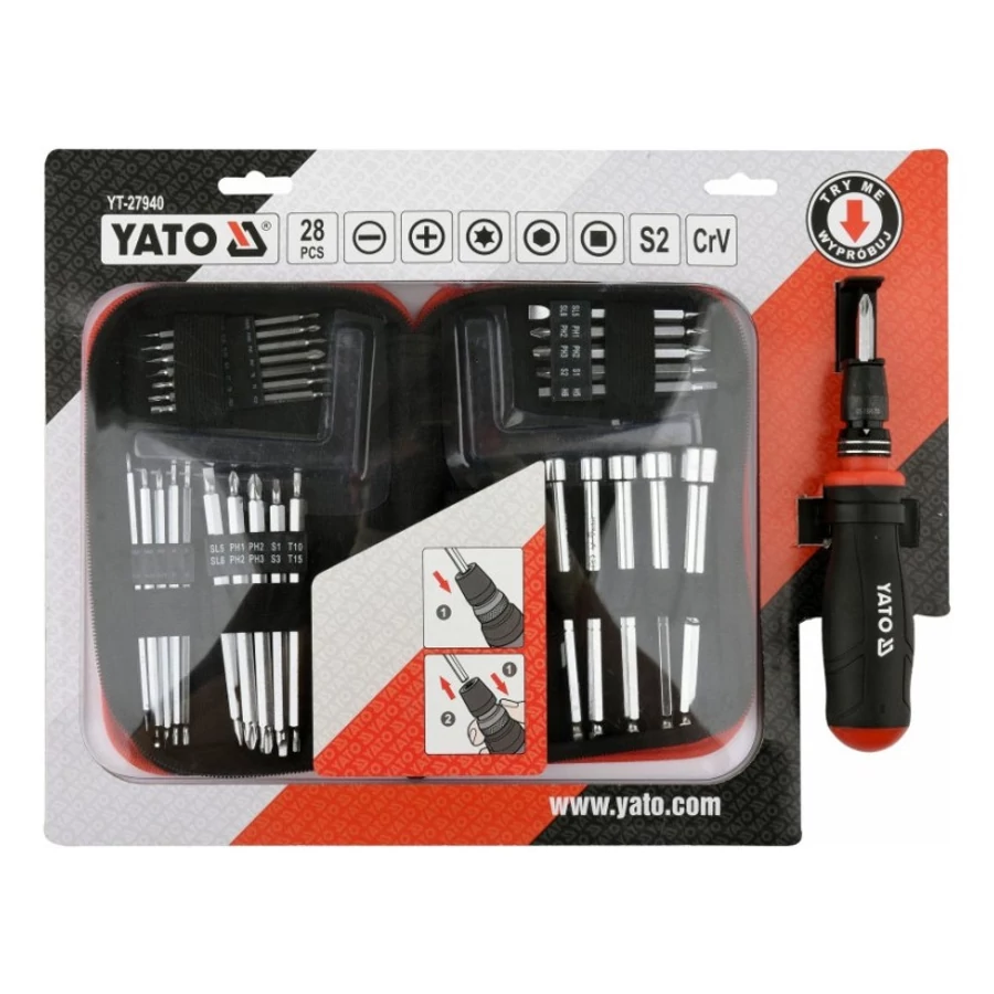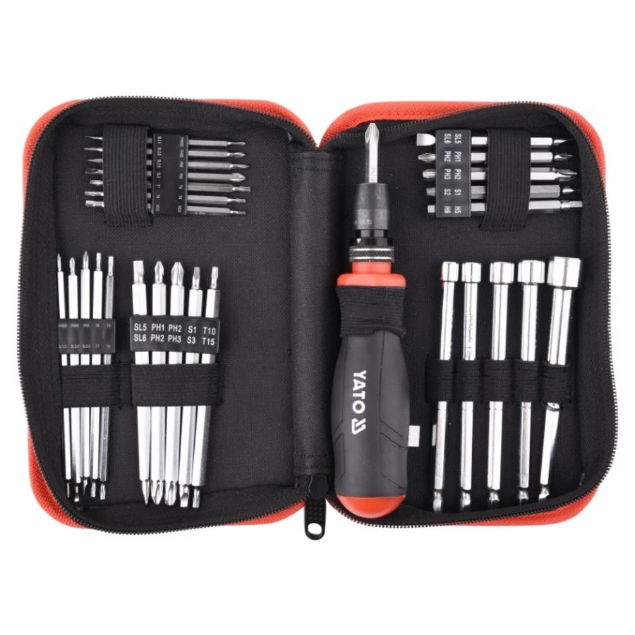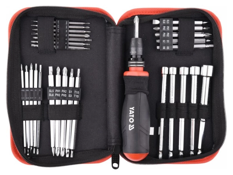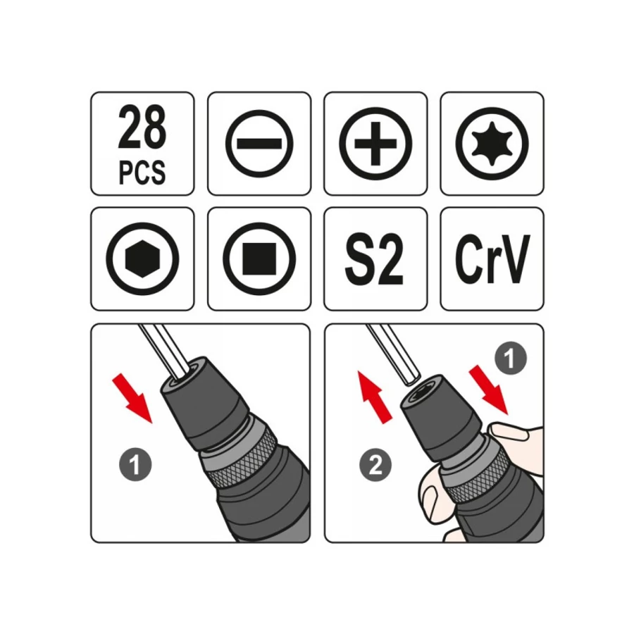 - 5 db 115 mm-es kétoldalas bit: SL5.0 x SL6.0, PH1 x PH2, PH2 x PH3, S1 x S3, T10 x T15