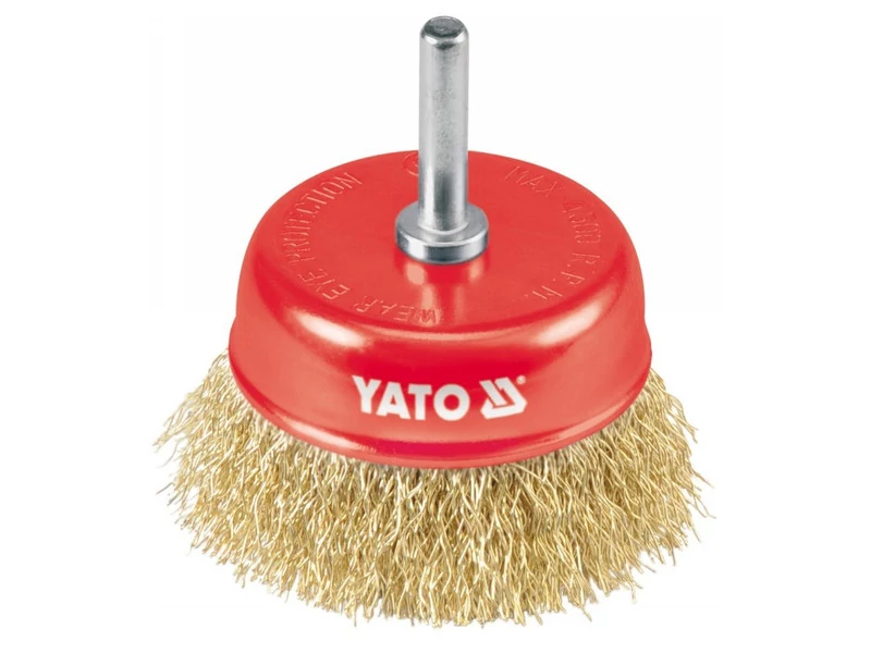 Ez a Yato 75 mm-es csapos fazékkefe ideális választás különféle fémfelületek hatékony tisztításához, rozsdamentesítéséhez vagy sorjázásához. A sárgaréz bevonatú, csavart huzalos kialakítás biztosítja a tartós használatot, míg a 6 mm-es befogószár révén könnyedén felszerelhető fúrógépre vagy más kompatibilis kéziszerszámra.