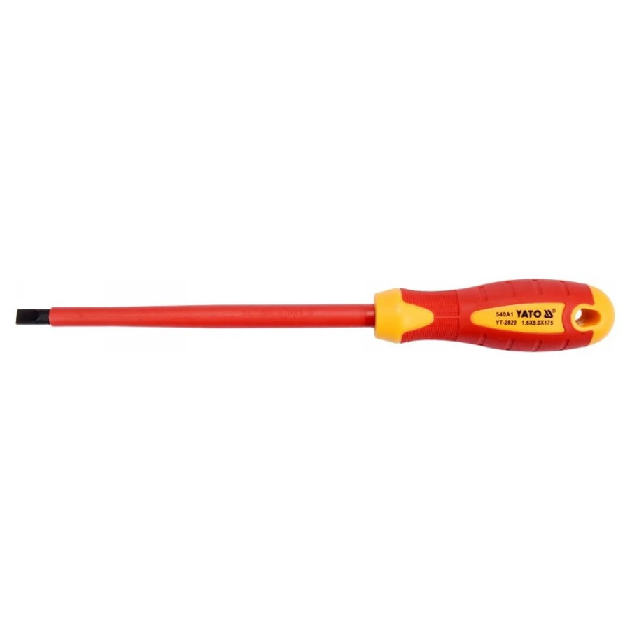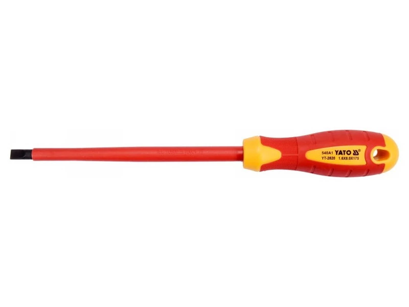 Ez a Yato lapos fejű csavarhúzó ideális választás villanyszerelők számára, akik megbízható, szigetelt szerszámot keresnek. A VDE tanúsítvány garantálja, hogy akár 1000 V feszültségig biztonságosan használható, így elektromos munkák során maximális védelmet nyújt.