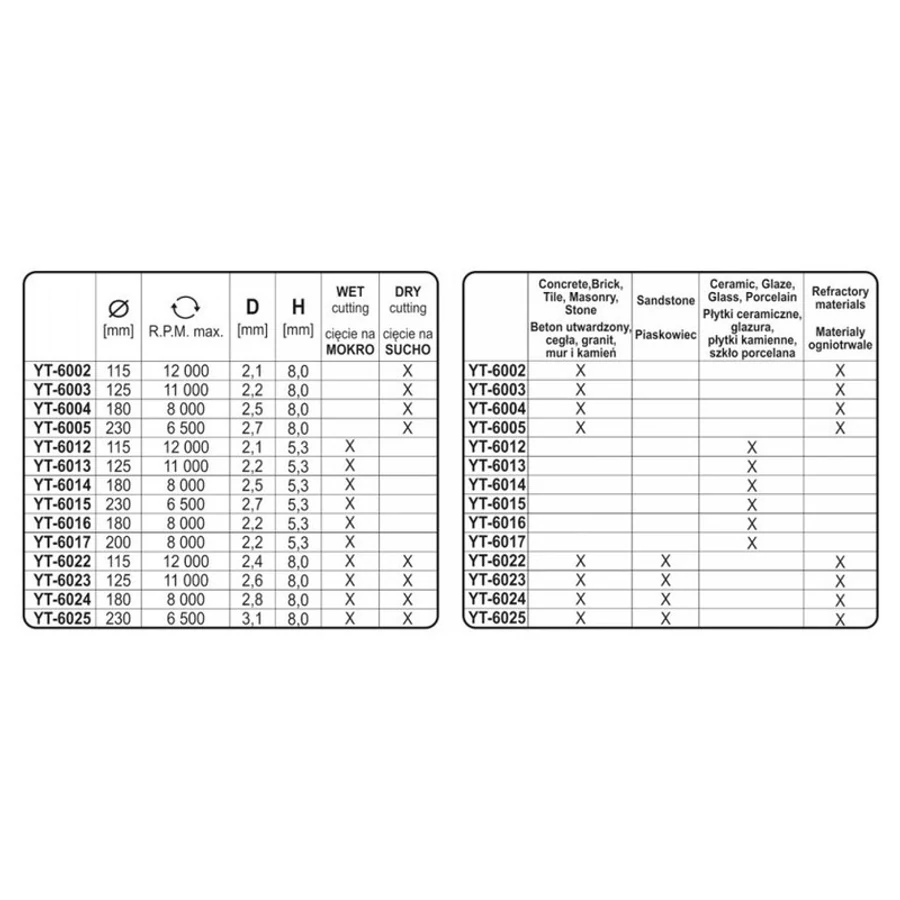 Pontos és tiszta vágáshoz tervezték száraz vagy nedves körülmények között. A csökkentett keresztmetszet gyorsabb és pontosabb vágást tesz lehetővé élforgácsolás nélkül és kisebb terheléssel a köszörűgépen. Optimalizált kobaltkeménységgel és válogatott A-osztályú ipari gyémánt szemcsékkel a kőedények és kerámiák tiszta, száraz és nedves vágásáért.