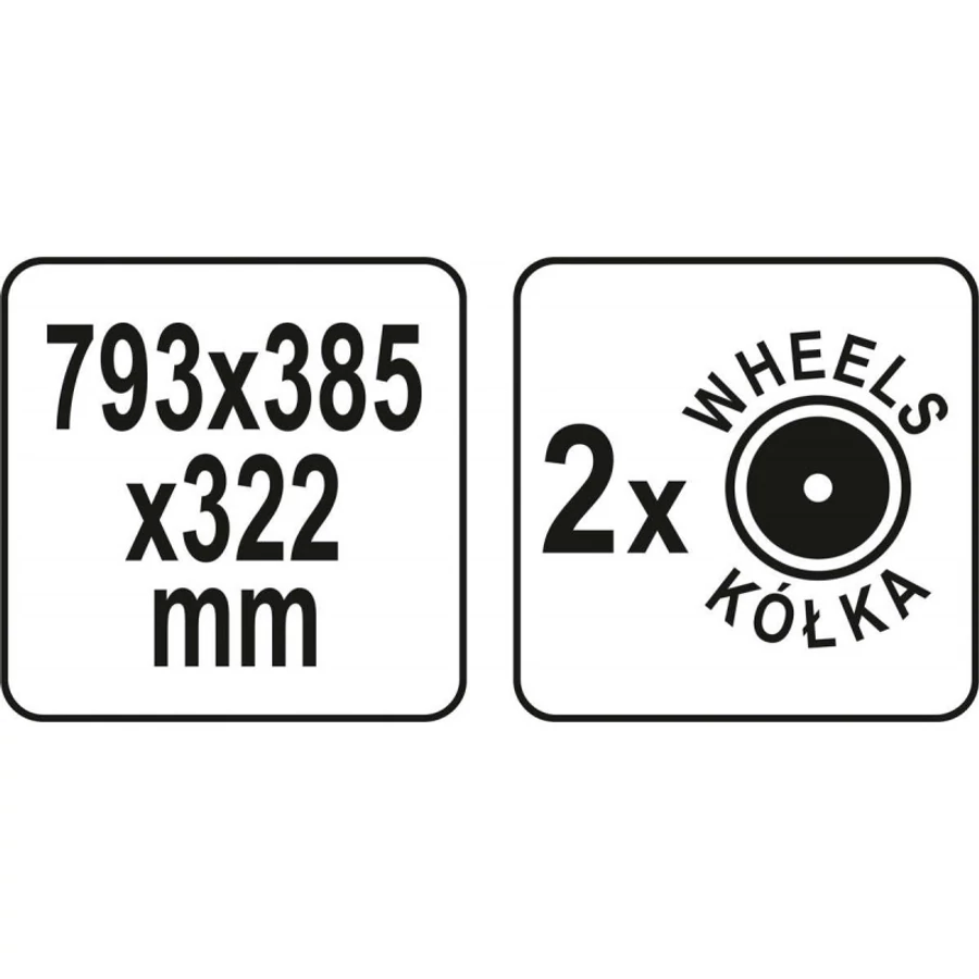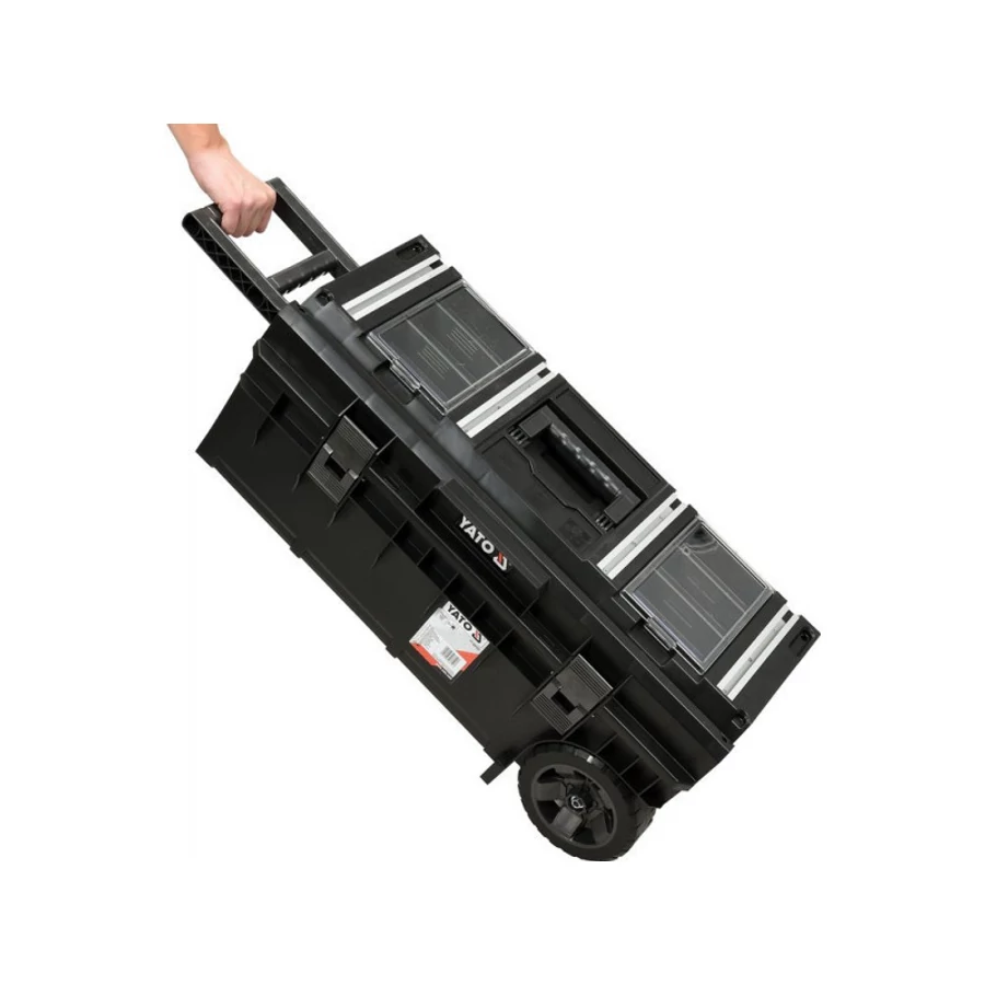 - Kényelmes fogantyú és 2 gumibevonatú kerék biztosítja a manőverezhetőséget és még nehéz szerszámok kényelmes szállítását is