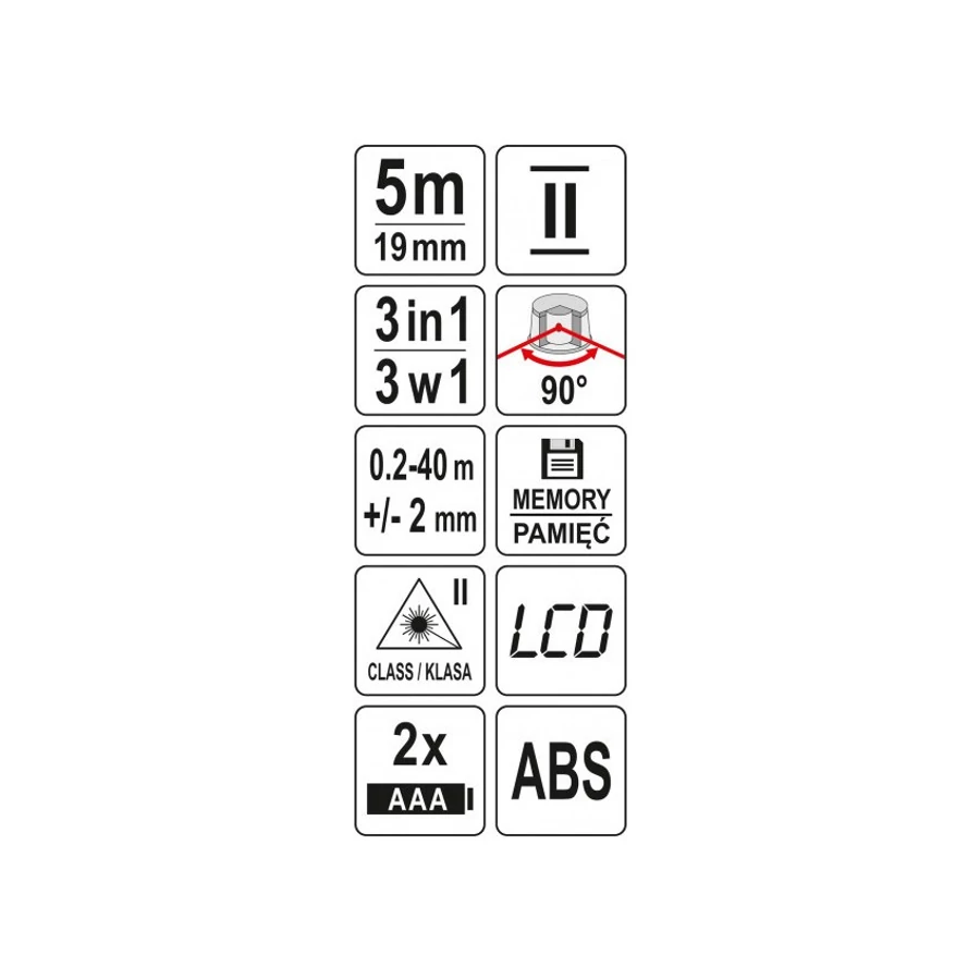 - Lézeres mérési távolság: 0.2 - 40 m (+/-2 mm eltéréssel)