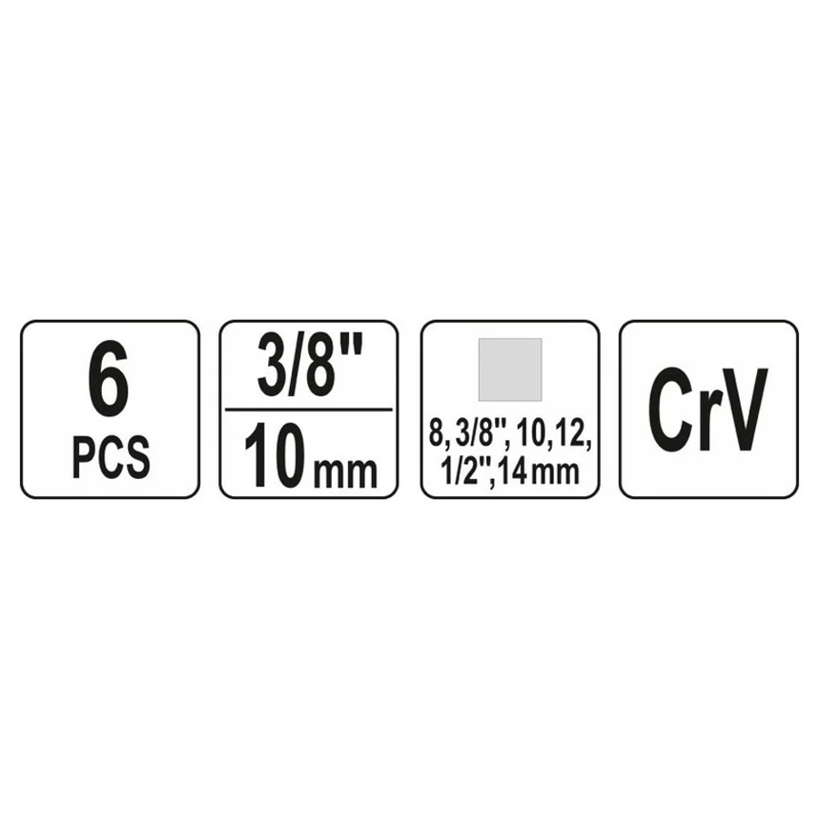 - Méretek: 8, 10, 12, 14 mm és 3/8 "és 1/2" négyzet