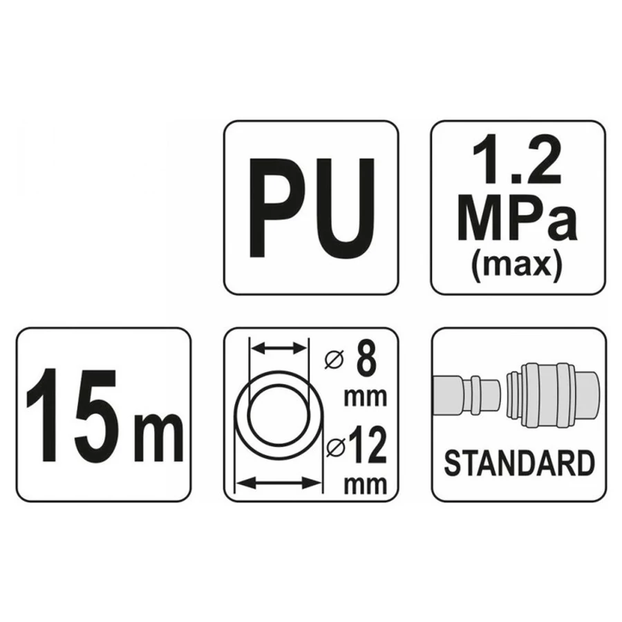 Professzionális, spirálos pneumatikus tömlő, ellenálló poliuretánból, tömlő gyorscsatlakozókkal. A tömlő ellenáll az alacsony és a magas hőmérsékletnek egyaránt, ezért a szabadtérben is használható. A finom spirál tekercs kialakításnak köszönhetően jelentős hely takarítható meg, a gyárilag beépített gyorscsatlakozók pedig nélkülözhetetlen eszközévé teszik bármely műhelyben vagy gyártóüzemben.