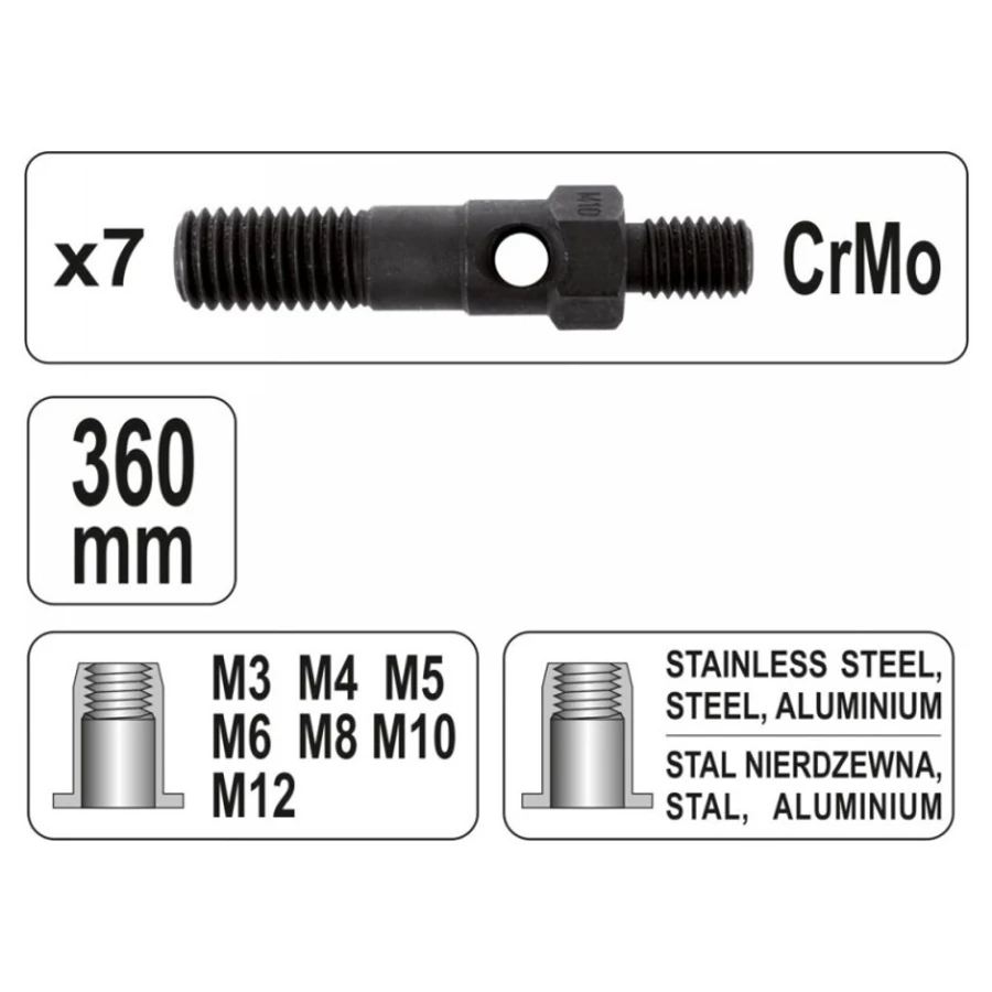 - Szegecsanyák átmérője: M3, M4, M5, M6, M8, M10, M12
