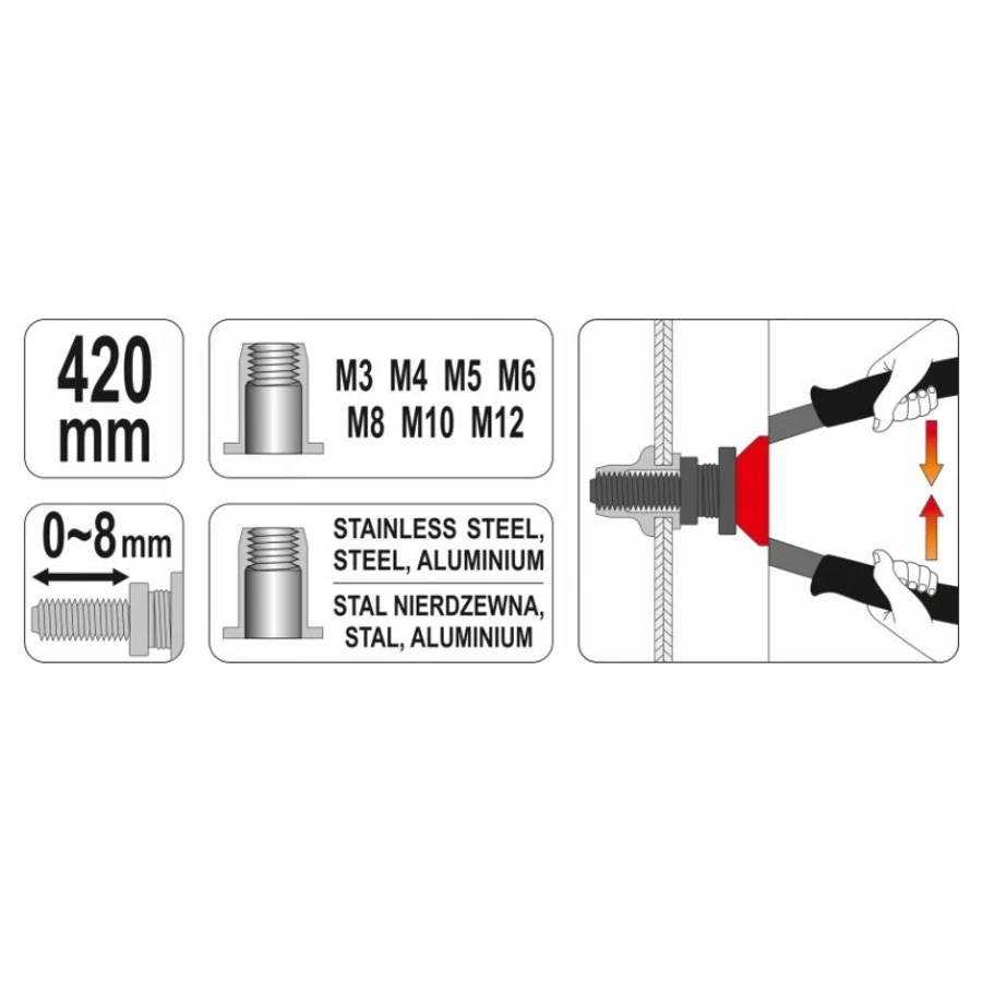 - Szegecsanyák átmérője: M3, M4, M5, M6, M8, M10, M12