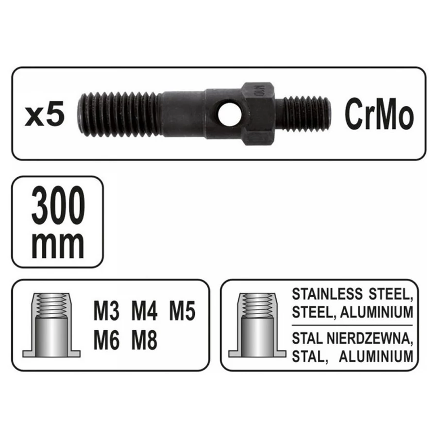 - Szegecsanyák átmérője: M3, M4, M5, M6, M8