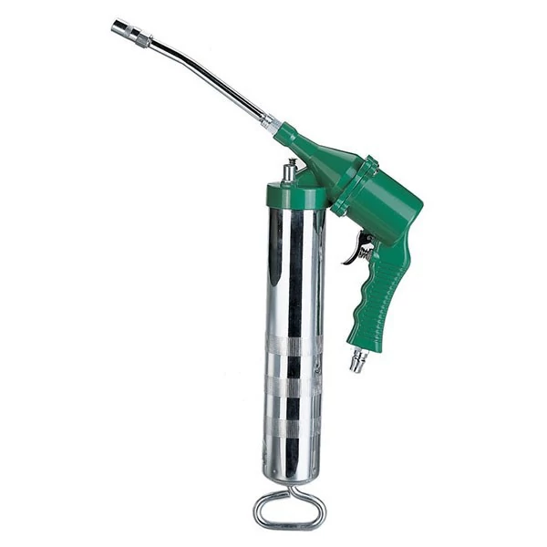 Pisztoly kialakítású zsírzóprés. zsírzógomb (ravasz) meghúzásával fokozatosan adagolható a kenőanyag.